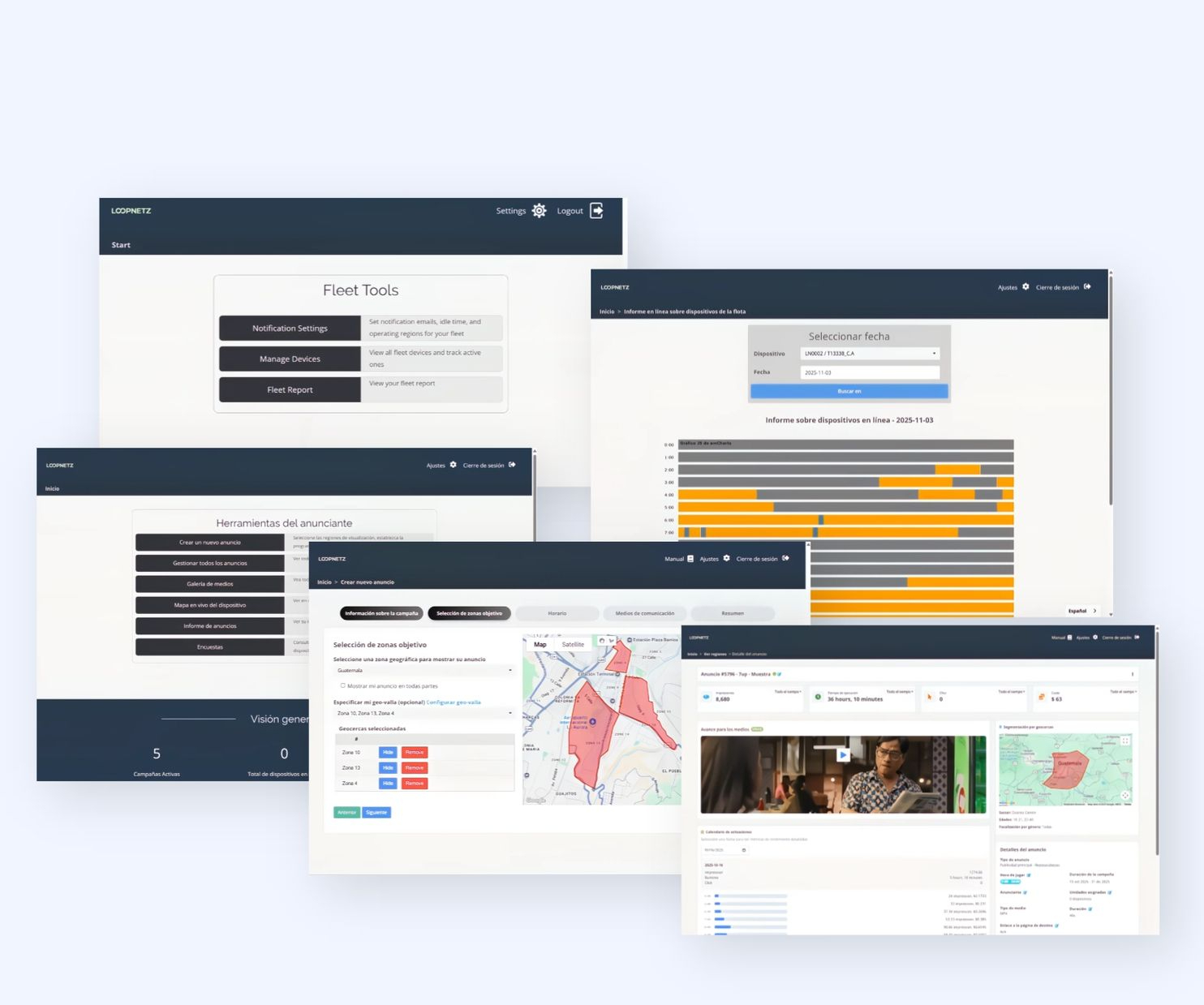 Gestioná tus campañas desde una plataforma con un esquema de pricing y UX/UI similar a Meta Suite o Google Ads.Diseñá, subí y monitoreá tus anuncios con total autonomía, sin correos ni procesos manuales y engorrosos.