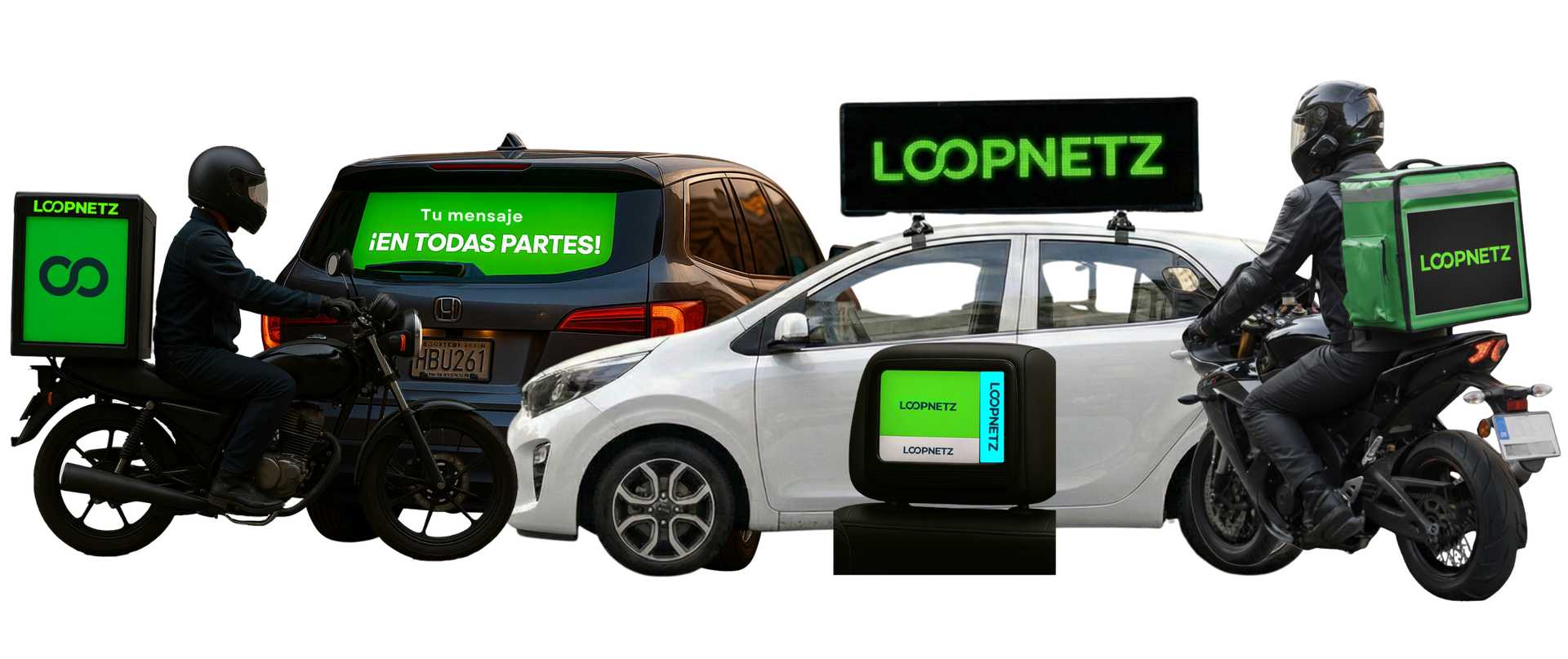 LoopNetz opera una red de pantallas digitales móviles, gestionada desde una sola plataforma, que permite velocidad, autogestión y métricas claras.