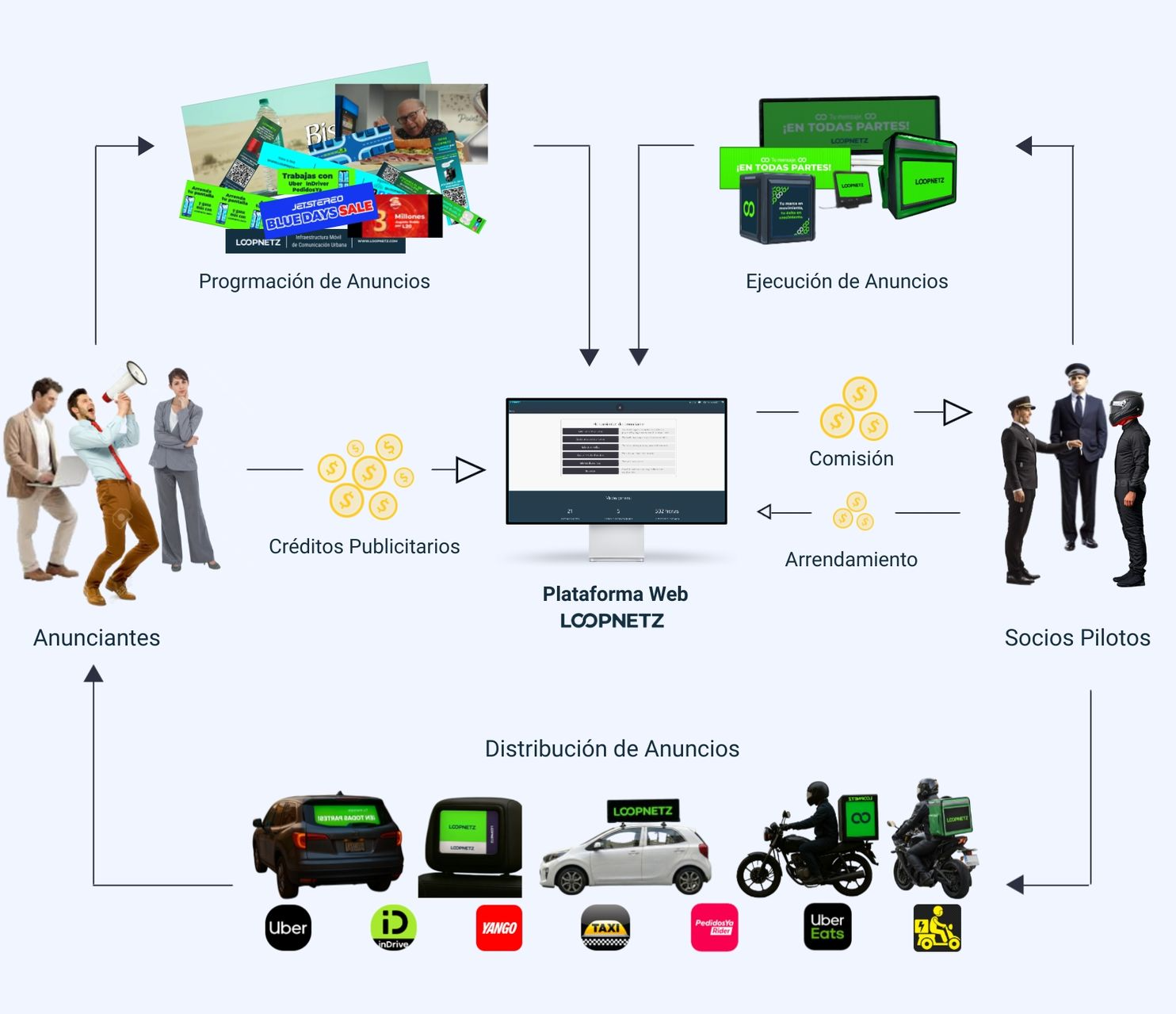 Alinear los incentivos de anunciantes, pilotos y LoopNetz garantiza que la publicidad esté activa, visible y en constante movimiento, maximizando el impacto de cada campaña.