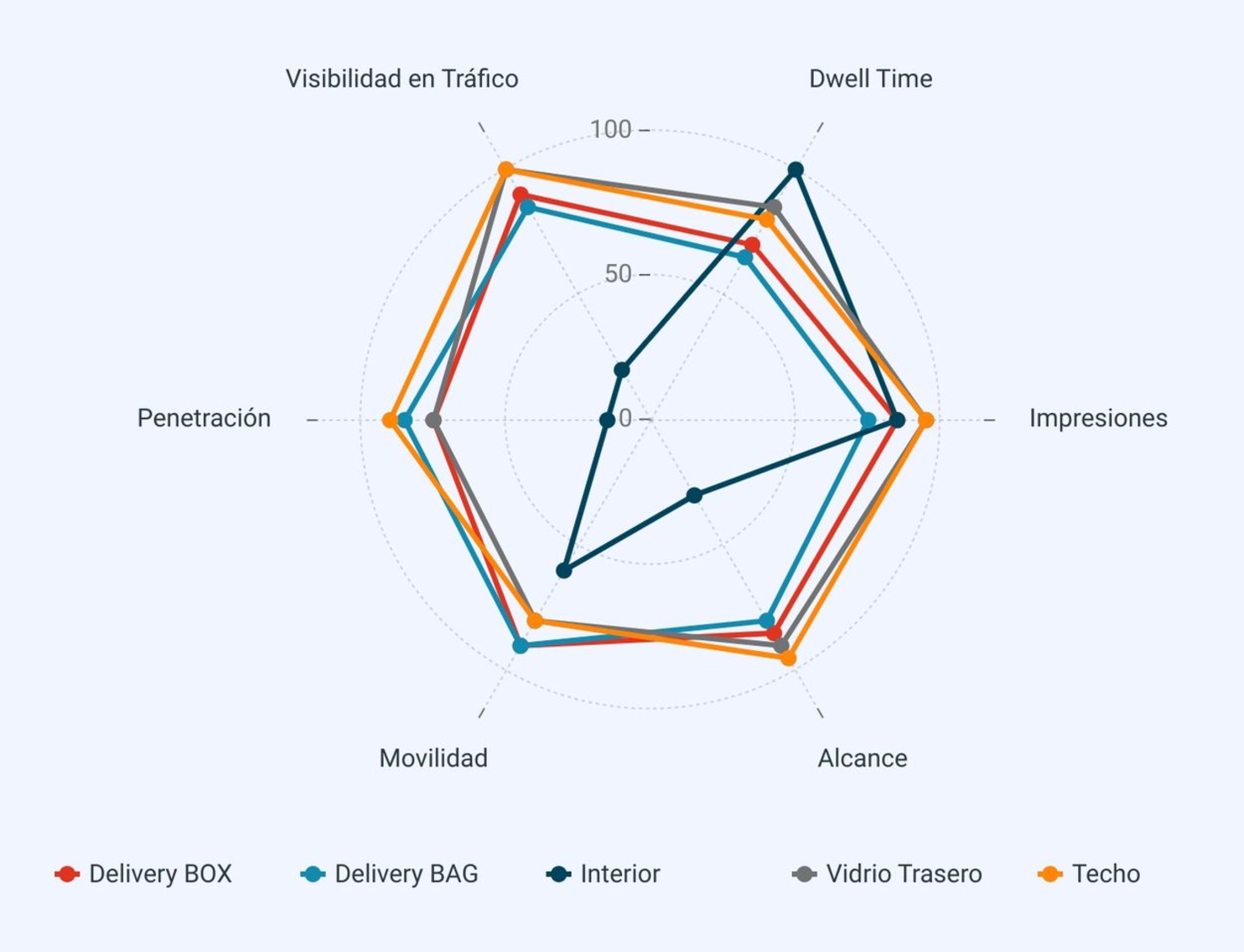Esta combinación de formatos permite alcanzar audiencias en distintos contextos de movilidad, horarios y zonas urbanas.